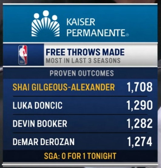 斗鱼体育app官网 当天1中0!近3个赛季罚球掷中数:SGA断层领跑 077布克德罗赞上榜