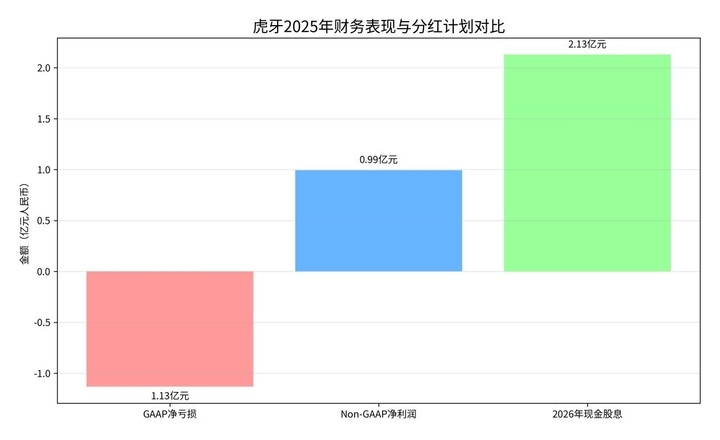 2025年,虎牙在GAAP(好意思国通用管帐准则)口径下净亏本约1.13亿元;即便剔除股权激励等非现款方式后的Non-GAAP口径,净利润也仅为9950万元。而公司同步秘书,基于“2025-2027年股息筹划”,将派发3100万好意思元(约2.13亿元东说念主民币)的2026年现款股息。此次分成金额,照旧达到全年净利润的2.1倍。