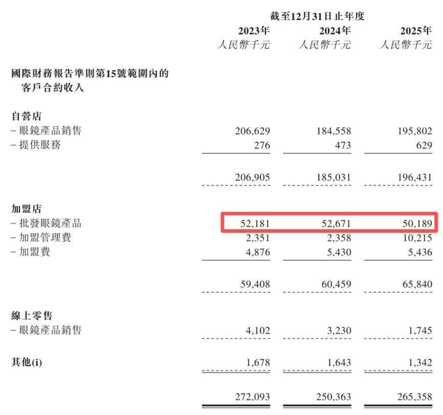 加盟店的数目下落导致批发眼镜的收入下落,但是收入却逆势加多,谜底藏在加盟处置费。公司加盟处置费从前一年的235.8万元加多到2025年1021.50万元,同比增幅333.20%,原因是公司自2025年起向浙江省内165家加盟店营救开征6%的处置费。