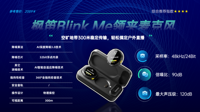 该家具遴选全向咪头,复古48kHz/24bit高采样率,最高声压级约128dB,信噪比约70dB;收音格调中性,能规复信得过东说念主声,复古灌音备份功能,可幸免素材丢失,降噪后果中规中矩。
