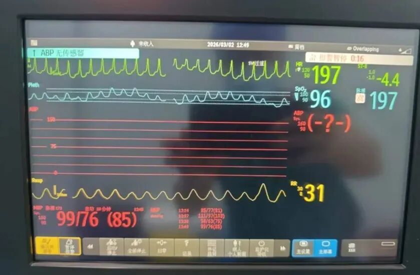 该院急诊照管连忙为老张贯穿心电监护,屏幕上的波形极端杂沓,心率飙升至197次/分。心内科值班医生王舒丹第一时间赶到,当即会诊为室性心动过速——这是一种高危心律失常。