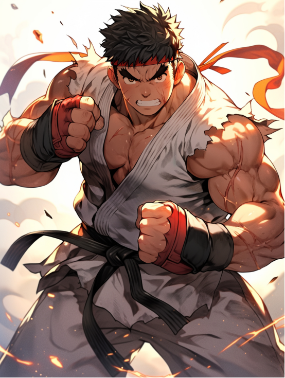 跟着游戏版块的更新,隆的肌肉线条愈加的推崇,诚然他的白手谈服装也越来越破,他基本上也不穿鞋了,手套的花样也酿成了红色,头巾的花样也从白色酿成了红色,诚然这是肯送给他的记挂礼物,