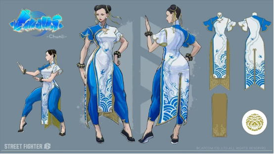 春丽的旗袍是中国传统服装,夙昔在国内如故很流行的,春丽在游戏中的形象,身穿白色战斗靴,蓝色紧身衣,下穿棕色丝袜,旗袍外面一稔蓝色连衣裙。
