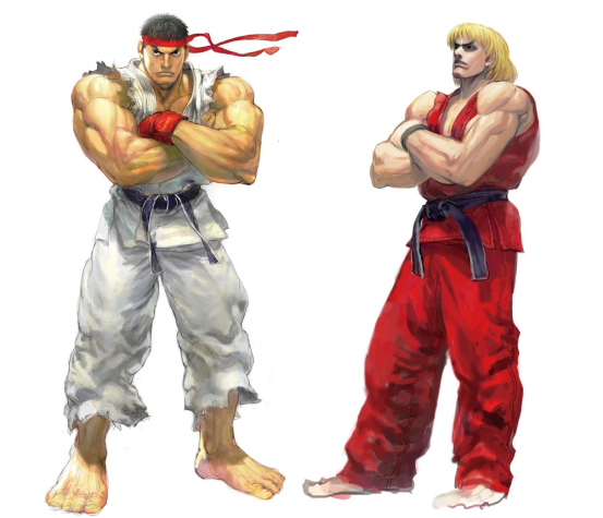 自后卡普空在《街头霸王1》的基础上,制作了黄血游戏的始祖街机游戏《快打旋风》,在游戏中白东谈主CODY模仿了隆,红东谈主凯模仿了肯,哈格市长则模仿了桑吉尔夫,游戏发布之后火遍天下。