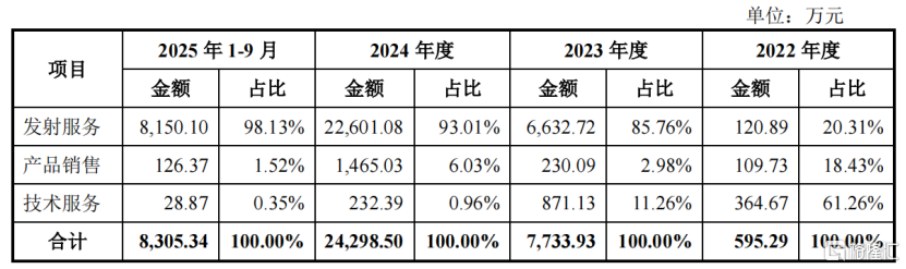 公司主要提供买卖输送火箭辐射处事,即公司通过其坐褥的输送火箭将客户卫星等投递预定轨说念的处事,该处事时常以整箭辐射、拼箭辐射及搭载辐射等形势进行。